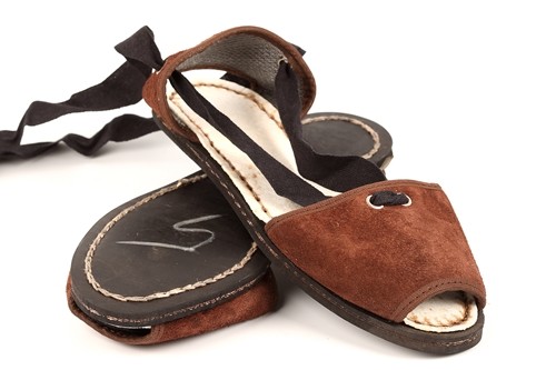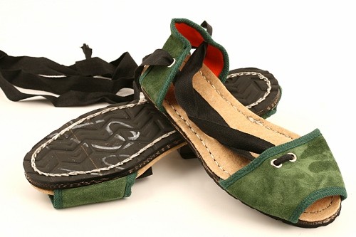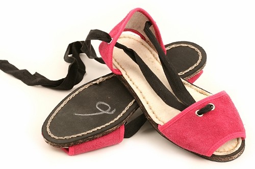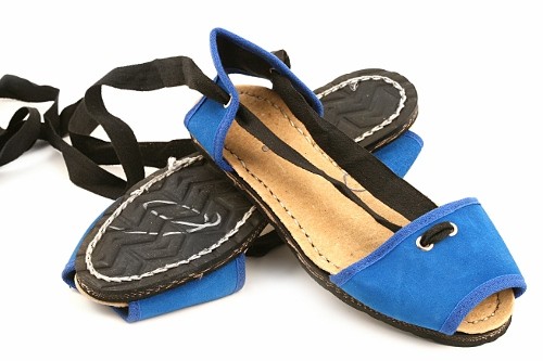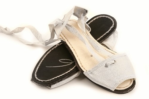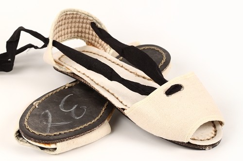 Albarca tradicional levantina con cintas y suela de caucho cosida. Disponible en lona o en serraje dependiendo del color.