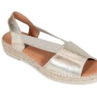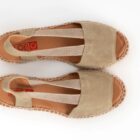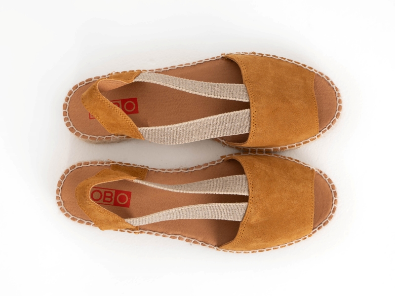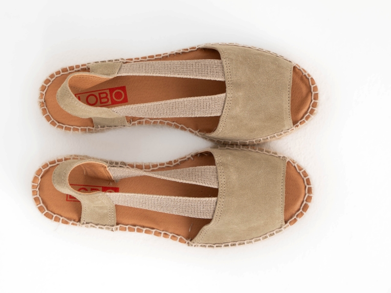 Comodidad y frescura se unen en nuestra alpargata de cuña baja de serraje (piel) con elásticos. La piel de serraje envuelve le pie con suma delicadeza, mientras que los elásticos ofrecen una sujeción perfecta sin oprimir el empeine. La puntera y la talonera abierta garantizan una frescura ideal para días cálidos, y su plantilla acolchada brinda confort y comodidad en cada paso. La suela de yute está reforzada con una fina capa de caucho, asegurando mayor durabilidad y adherencia.