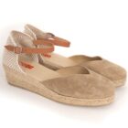 Alpargata de yute de SERRAJE de cuña media con empeine escotado en V y pulsera de piel al tobillo.