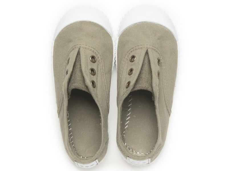 Zapatilla tipo bamba de lona con elástico y puntera de goma para hombre y mujer. Algodón 100% orgánico y tintado natural. Suela de caucho blanco.