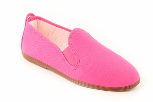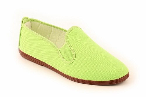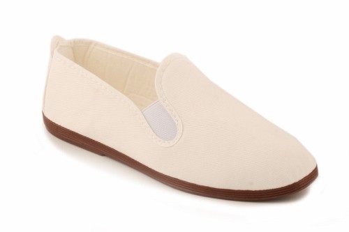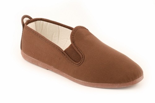 Zapatilla plana de lona con elásticos laterales tipo Kung Fú y suela de goma muy ligera y flexible.
